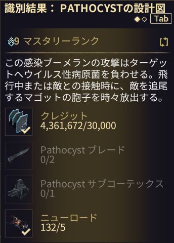 | BROKEN WAR | 10 | 「二番目の夢」クエスト 【本体】Shadow Stalkerからドロップ 【パーツ】Cephalon Simarisから購入、センティエントからドロップ |  | |  |