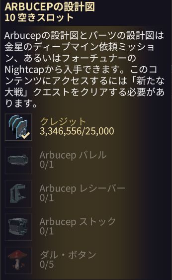 ARBUCEP NEW | | ディープマイン依頼ミッション、あるいはフォーチュナーのNightcapから入手(金星) |  | | |