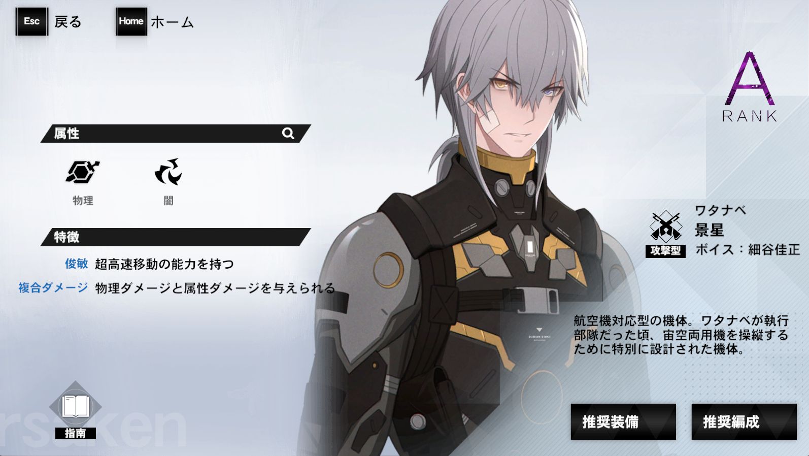 隊長スキル1全隊の闇属性ダメージが10%上昇、攻撃型汎用機体の攻撃が5%上昇