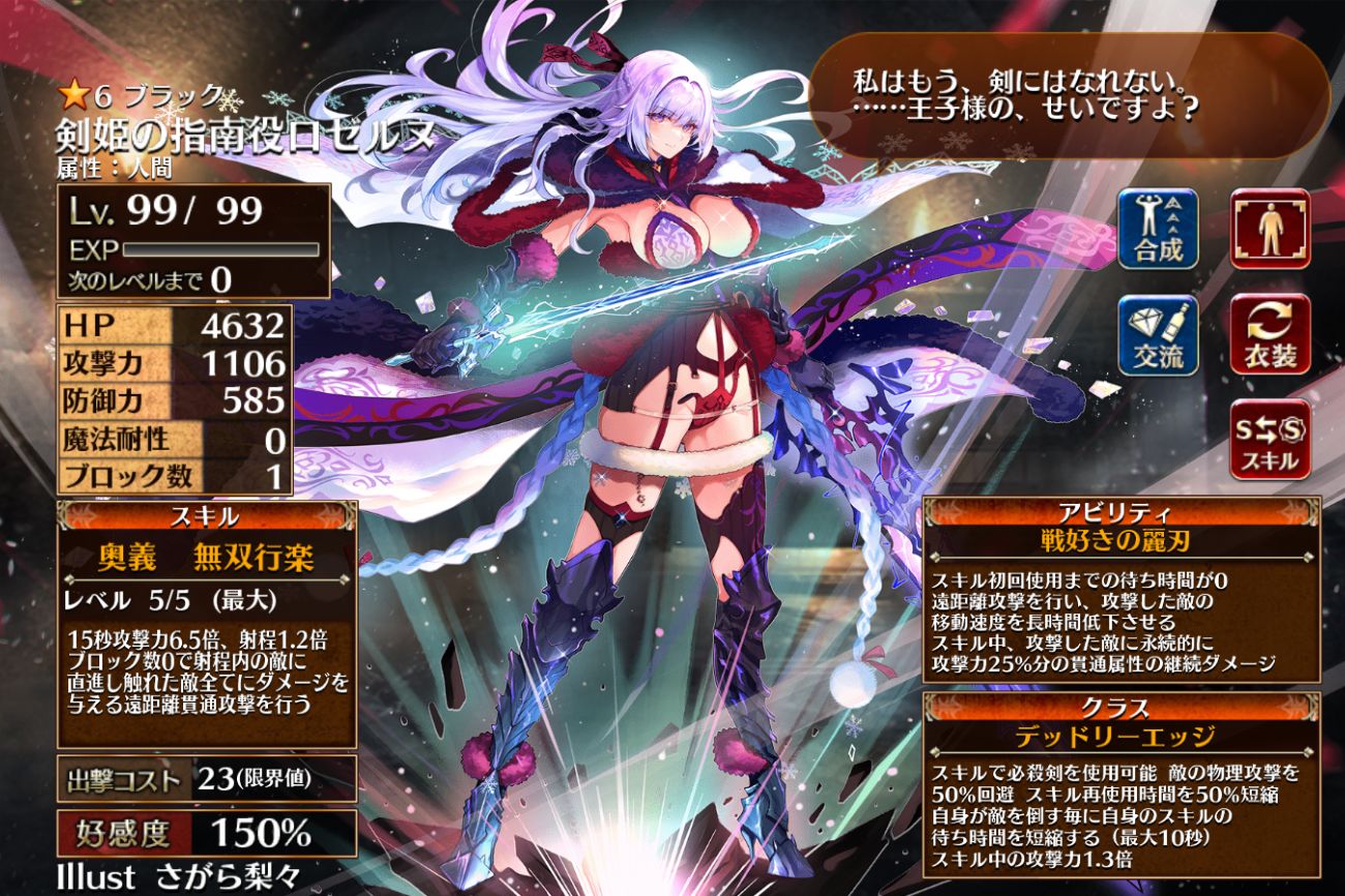 射程無限の高火力直線攻撃を持つロゼルヌにとって、「敵を倒すとスキルCTが短縮される」効果がとても噛み合っています。元々スキルCTが短いことも相まって連発できます。しかもこの効果永続なんで。