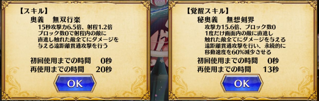 | 自己倍率 | [攻撃力]5.0(6.5)倍 [射程]1.2倍 |