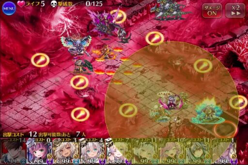 ボス5体とも左右の脇道から回り込むように襲撃してくるうえに、背後から抉り取るように移動して中央に戻ろうとします。移動の癖がすごい。王子とカニちゃんの位置はボスが通るルートなので、ブロックしないユニットを配置しておくのが良いですね。トゥアンの位置が一番安全。