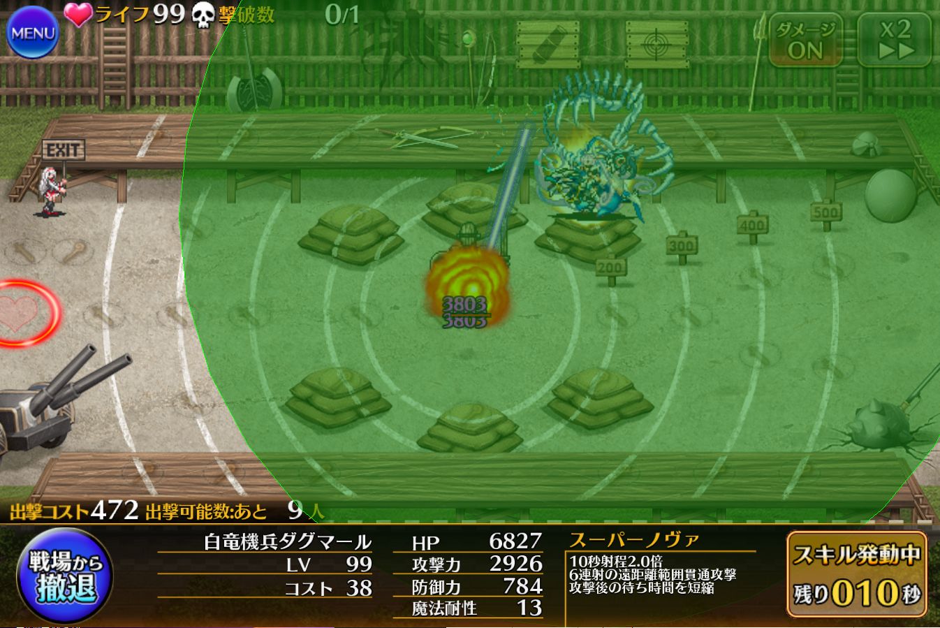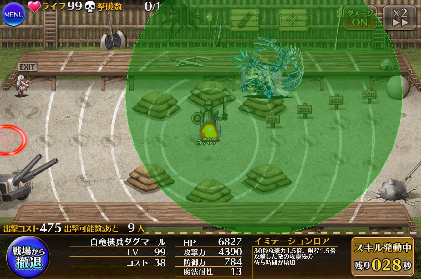 メインで使用するであろう覚醒スキルによって射程が2倍に伸びる点と、役割的にちょっとでも火力欲しいよねーっていう考えからそうしましたが、マップ全域をカバーできそうな「竜砲騎士隊長」も魅力的です。