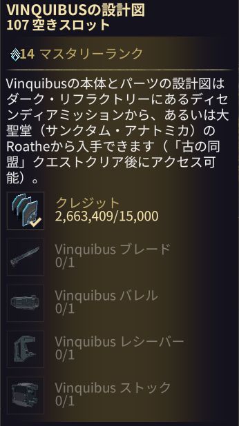 【パーツ】Cephalon Simarisから購入、センティエントからドロップ