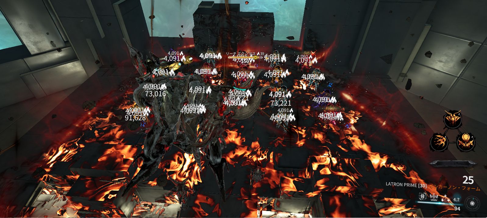 | GULPHAGOR | 敵に持続ダメージを与える。 倒すと苦痛の輪が展開される。 ヘルスオーブとエネルギーオーブが確定でドロップする。 ![]() ▼影響を受けるステータス ラッチ(拘束)持続時間:アビリティ効果時間 苦痛の輪の効果時間 :アビリティ効果時間 苦痛の輪の効果範囲 :アビリティ効果範囲 ラッチ(拘束)ダメージ:アビリティ威力 苦痛の輪のダメージ(火炎):アビリティ威力 オーブドロップ率 :アビリティ威力 |